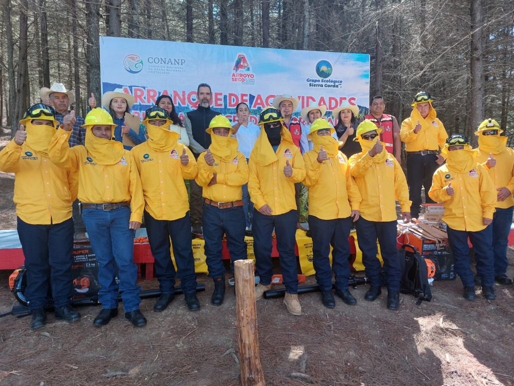Para celebrar el arranque de actividades de la Brigada La Florida, para el manejo del fuego, gracias a convenio suscrito con la Presidencia Municipal de Arroyo Seco, lo que permite su contratación, equipamiento y operación en un esfuerzo colaborativo. Ello permitirá una oportuna y rápida atención a cualquier incendio que se presente en aquel municipio; GESG aporta los salarios de los brigadistas, proporcionó una motosierra, 2 unidades de radio y pulaskis, y el Ayuntamiento su equipo de protección y más herramientas, vehículo y seguro médico. Agradecemos los buenos oficios de la CONANP para conseguir dicho convenio y la voluntad del Edil, Lic. Fernando Sánchez Gil por la protección de sus bosques y selvas.